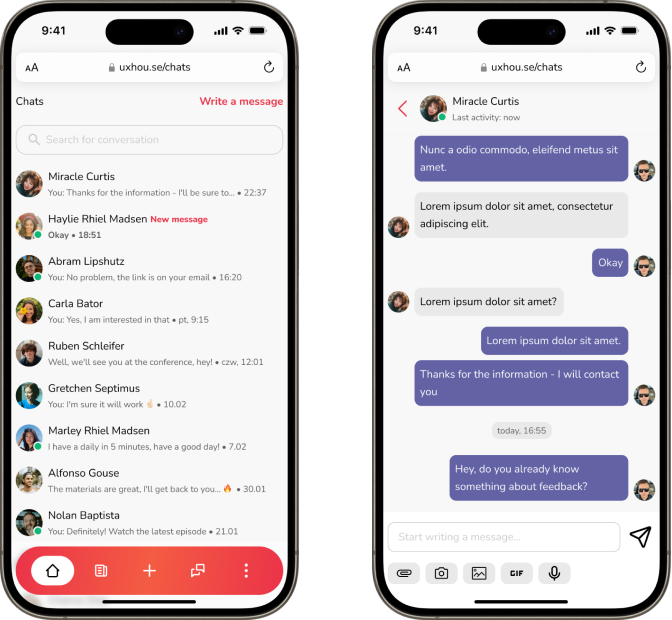 At UXhouse you will not only gain knowledge and develop professionally, but you can also meet interesting people with similar interests. Our community is the place where you can make new friends, find collaboration partners and be inspired by the achievements of others. Communicate quickly and easily with other users via chat. This allows you to get immediate answers to your questions or exchange ideas with other UX enthusiasts.